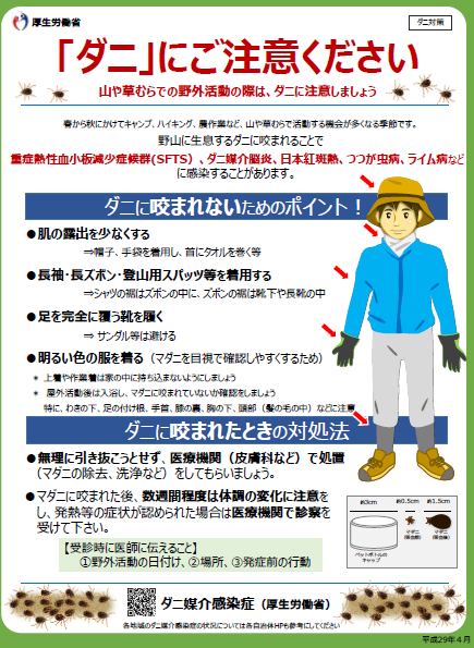 下記に厚生労働省から人のダニ対策の情報提供を掲示しておきます。