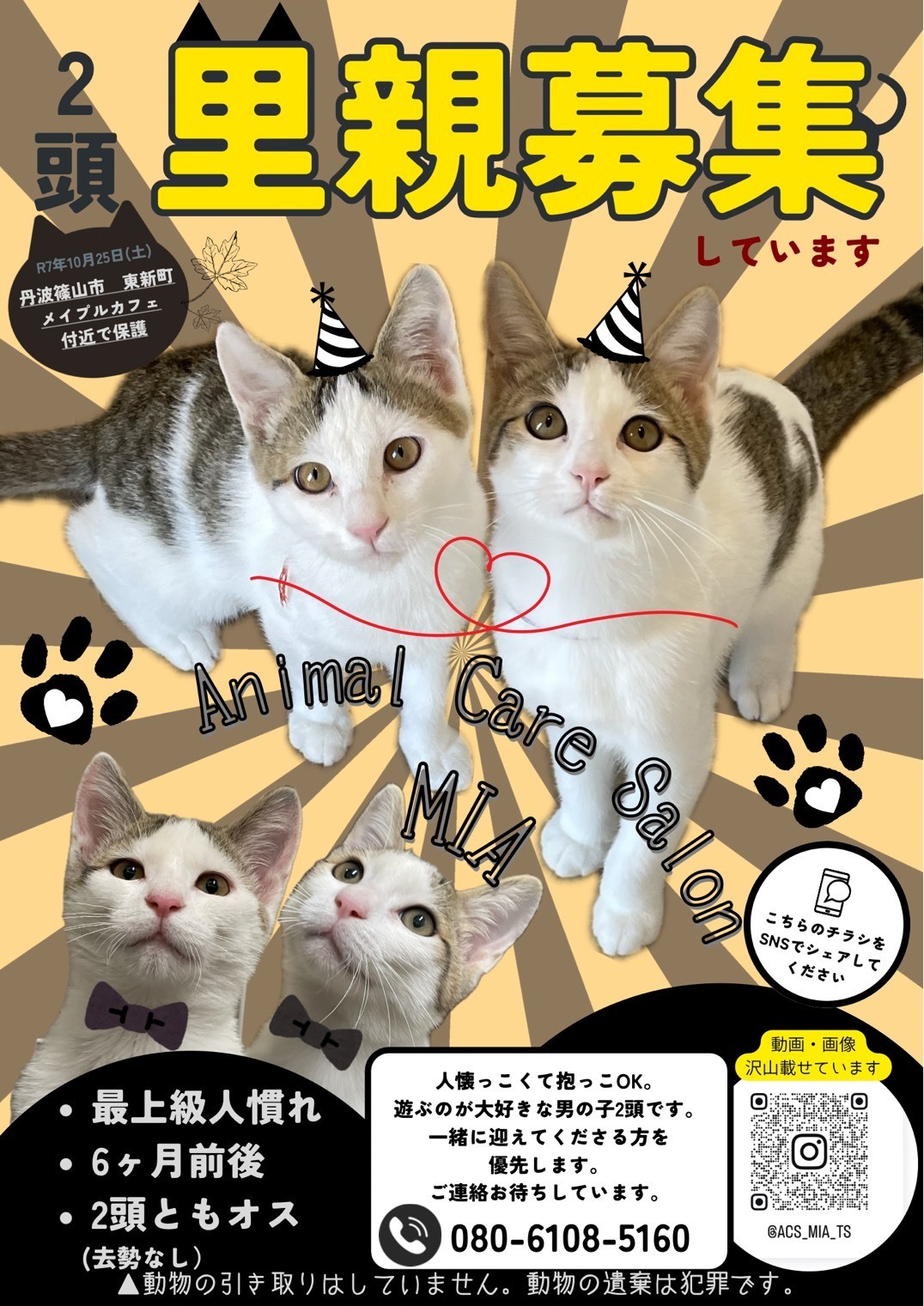 現在生後、5か月の兄弟オスが2匹です。