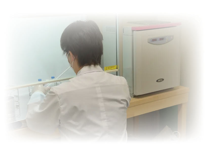 培養室は、無菌作業を行うクリーンベンチ、細胞を培養するためのインキュベーター、また育った細胞を観察する専用の位相差顕微鏡、高機能遠心機、などを備えています。