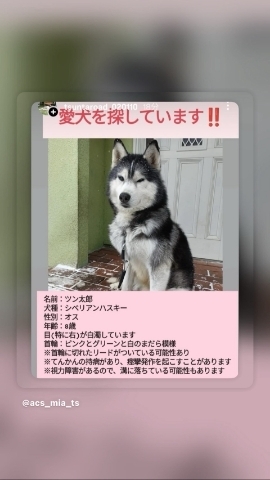 迷子犬の捜索をしています。